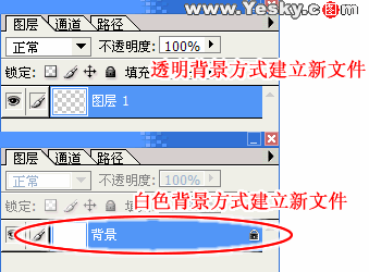 每次新建一个Photoshop文件时图层会自动建立一个背景图层(使用白色背景或彩色背景创建新图像时),这个图层是被锁定的位于图层的最底层。我们是无法改变背景图层的排列顺序的,同时也不能修改它的不透明度或混合模式。如果按照透明背景方式建立新文件时,图像就没有背景图层,最下面的图层不会受到功能上的限制(如图3)。