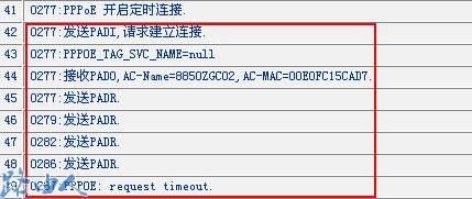 当你设置了PPPOE拨号后,无法获取WAN口IP时,可进入管理界面――系统工具――系统日志,如果你看到的日志是: