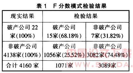 3、本模式使用的样本更加扩大。其使用了Compustat PC Plus会计数据库中1990年以来的4160家公司的数据进行了检查;而Z分数模型的样本仅为66家(3家破产公司及33家非破产公司)。F分数模式对4160家公司进行验证的结果如下表所示: