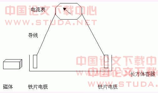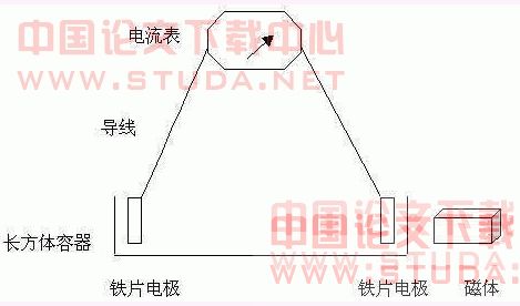 1、 在多大的铁片面积下,产生多大的电流?具体数字还要进一步实验,从目前实验来看,铁片面积及磁场强度大的条件下,产生的电流强度大。如铁片浸入硫酸亚铁溶液20毫米时要比浸入10毫米时的电流强度大。